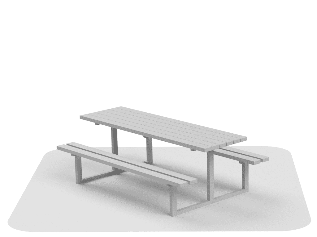 Ytterst holdbar sittegruppe med faste sittebenker. Designet for offentlige lekeplasser, skole og barnehager samt rekreasjons- og byområder.
